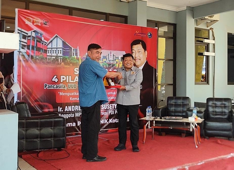 “Hadirnya AI jangan dimusuhi, tapi harus dimanfaatkan untuk memperkuat nilai-nilai Pancasila,” ujar Andreas saat menjadi narasumber dalam Sosialisasi Empat Pilar Kebangsaan bertema “Menguatkan Pilar Kebangsaan untuk Mendorong Kemajuan Teknologi Berkelanjutan” di depan Gedung Rektorat Politeknik Kota Malang, Jumat pagi (10/10/2025).