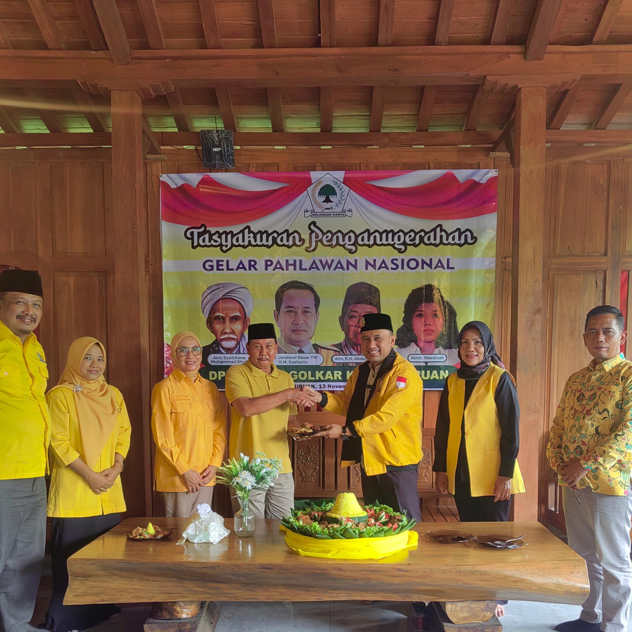PASURUAN, Projatim.id — Dewan Pimpinan Daerah (DPD) Partai Golkar Kabupaten Pasuruan menggelar tasyakuran atas penganugerahan gelar Pahlawan Nasional yang diberikan oleh Presiden Republik Indonesia Prabowo Subianto kepada 10 tokoh bangsa.