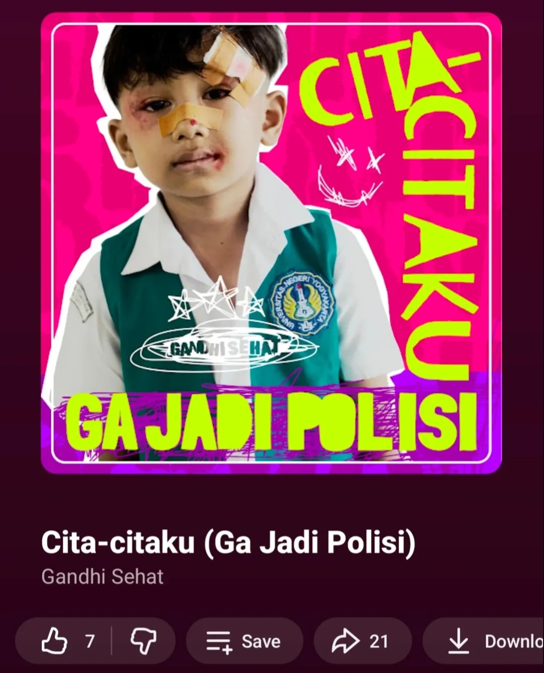 JAKARTA, Projatim.id -Jagat media sosial dihebohkan dengan kabar penarikan lagu berjudul “Cita-Citaku (Ga Jadi Polisi)” yang dibawakan seorang bocah berusia 6 tahun. Lagu yang sempat beredar selama sepekan itu tiba-tiba diumumkan ditarik dari peredaran melalui unggahan di akun Instagram resmi @Gandhi_sehat.