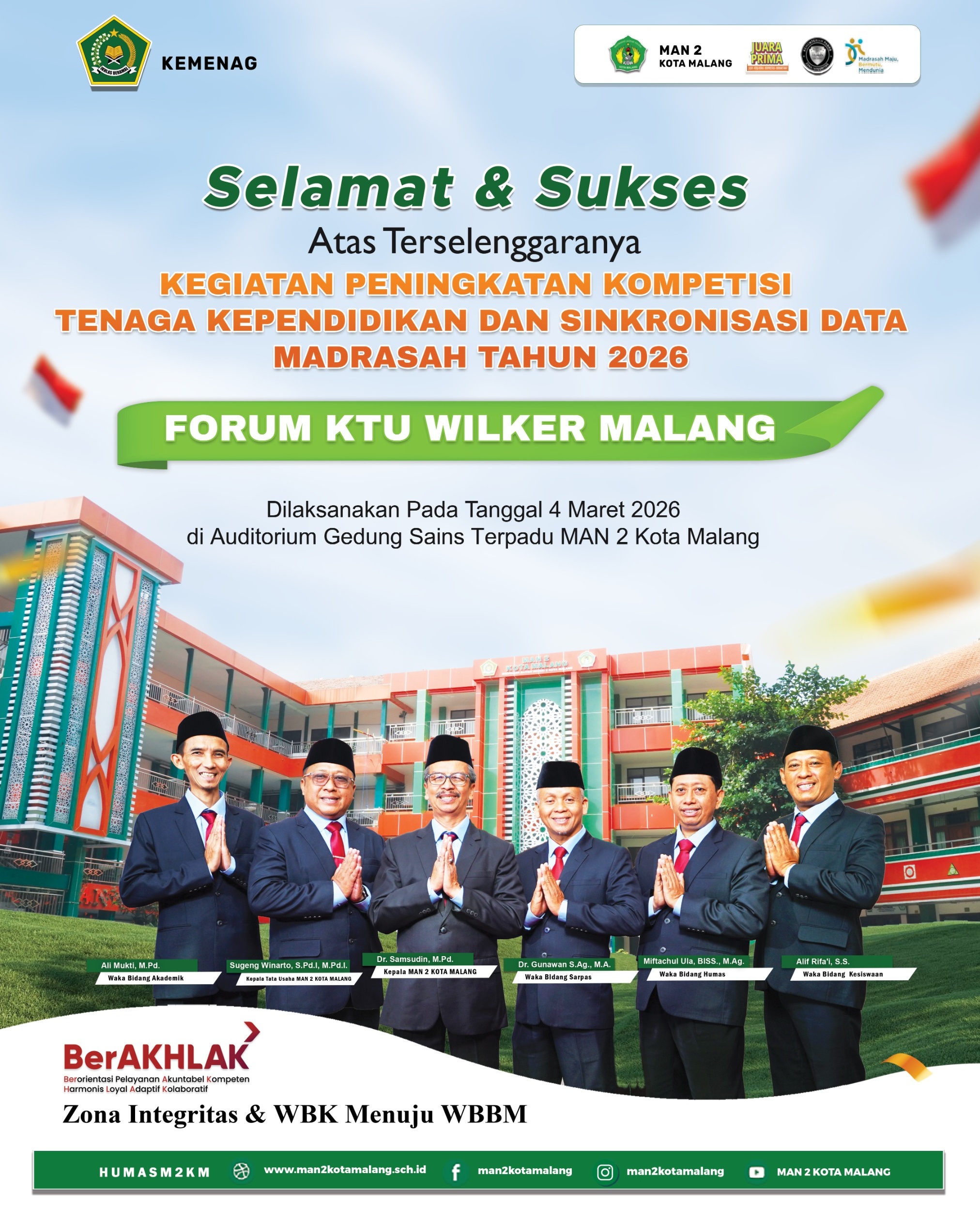Kegiatan ini turut mendapat dukungan penuh dari MAN 2 Kota Malang sebagai tuan rumah. Kepala Madrasah, Dr. H. Samsudin, memberikan fasilitas serta penyambutan hangat kepada seluruh peserta dan tamu undangan.