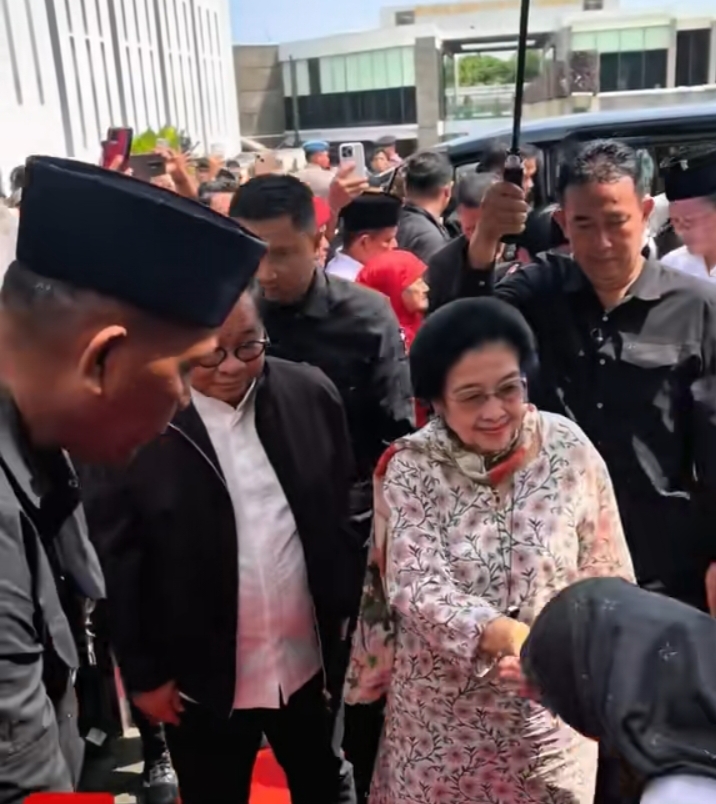 Dengan penuh suasana kehangatan dan kebersamaan, Megawati yang tampak didampingi sejumlab pengurus teras DPP PDIP menyalami beberapa pengunjung makam yang sudah antri ingin berjabat tangan.